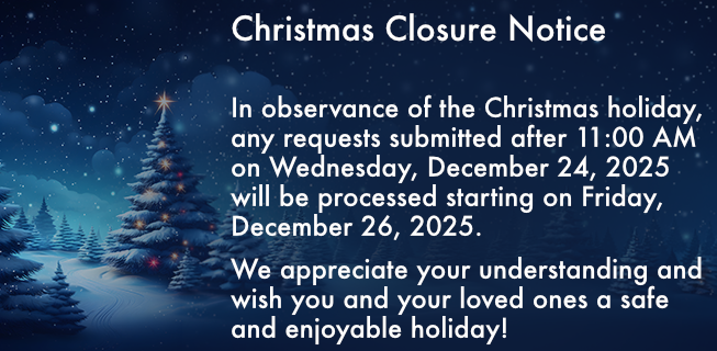 Duplicate requests submitted via website and called-in will delay our ability to assist you.