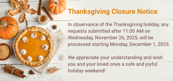 Duplicate requests submitted via website and called-in will delay our ability to assist you.